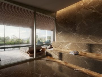 Unidades da torre Europa consideram apartamentos com áreas privativas a partir de 285,24 m² – unidade private space com áreas privativas a partir de 15,50 m² na torre Libris.