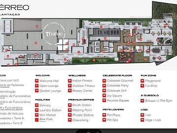 Fitness indoor, fitness outdoor, beauty, praças, delivery, mini market (entrega do local - implantação por conta do condomínio), laundry, cowork, play kids, playground, pet spa, pet place, gourmet.