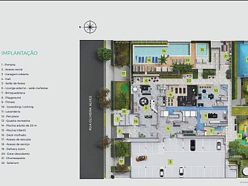 Ficha Técnica Endereço: Rua Oliveira Alves, 764 Bairro: Ipiranga Cidade / Estado: São Paulo / SP Projeto Arquitetônico: Alexandre Milleu Paisagismo: Neusa Nakata Decoração: Priscilla Zarzur Área do Terreno: 2.650 m² Total de Unidades: 150 unidades Nº de Pavimentos: 15 Nº de Unidades / Pavimentos: 10 Vagas de automóveis: 114 Vagas de motos: 12 Apartamentos tipo: 60 m² (2 dormitórios, sendo 1 suíte, 1 vaga) - 28 unidades 46 m² (1 suíte com lavabo, 1 vaga) - 56 unidades 30 m² (studio com vaga) - 20 unidades 30 m² (studio sem vaga) - 36 unidades Giardinos: • 113 m² (2 dormitórios, sendo 1 suíte, 1 vaga) - 1 unidade 111 m² (2 dormitórios, sendo 1 suíte, 1 vaga) - 1 unidade • 88 m² (studio com vaga) - 1 unidade • 84 m² (studio com vaga) - 1 unidade • 70 m² (1 suíte com lavabo, 1 vaga) - 2 unidades • 68 m² (1 suíte com lavabo, 1 vaga) - 2 unidades • 35 m² (studio com vaga) - 2 unidades